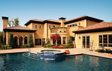 地中海风情的意大利式别墅外墙大面积采用涂料,结合精细的石材线条,以红瓦白墙营造出与自然合一的朴实质感。多设置连接室内与庭院的长廊,将室内与室外融为一体。